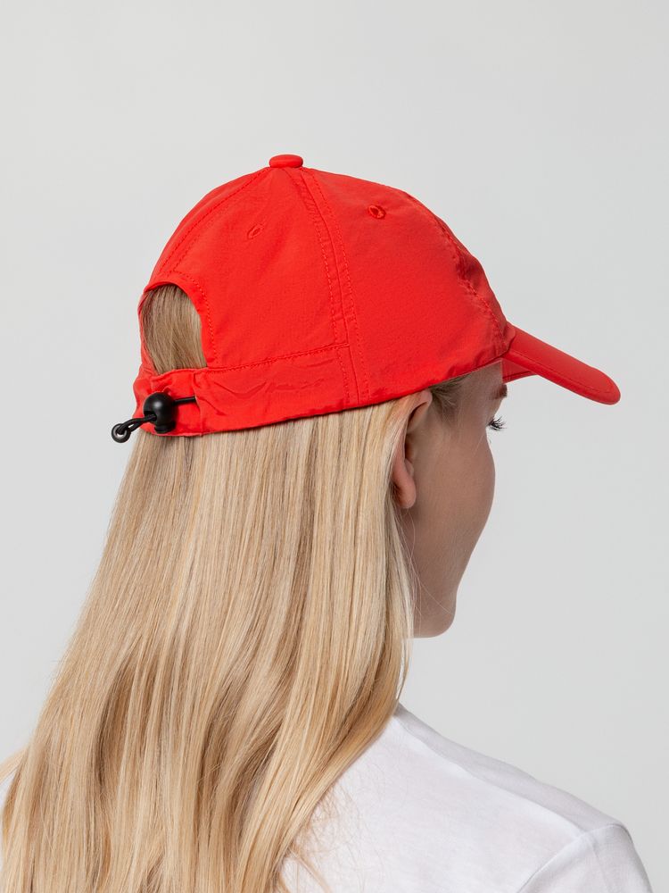 Бейсболка удобно складывается — ее можно убрать в рюкзак или чемодан, не опасаясь, что козырек потеряет форму. При этом внешне она выглядит как обычная: шов посередине не искажает классическую форму козырька, когда кепка надета на голову. Модель: 6 клиньев с лобовым швом, обшивные люверсы. Размер регулируется шнурком-резинкой с зажимом cord lock Бейсболка складывается в чехол.