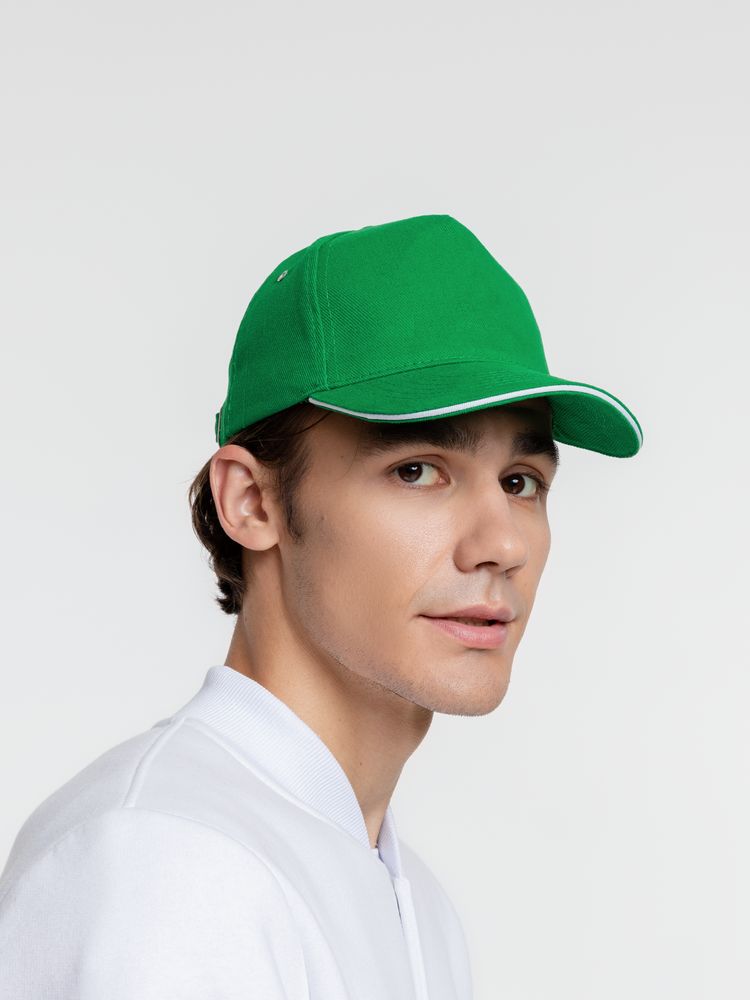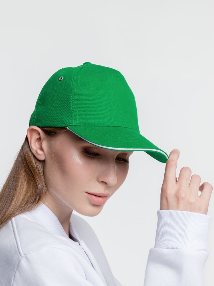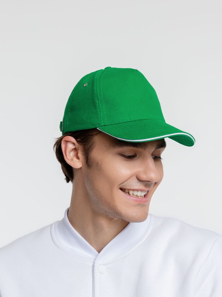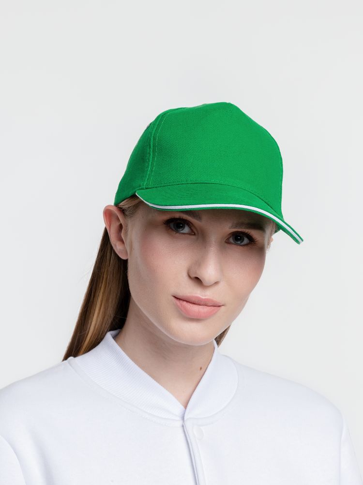 Бейсболка Classic, ярко-зеленая с белым кантом
