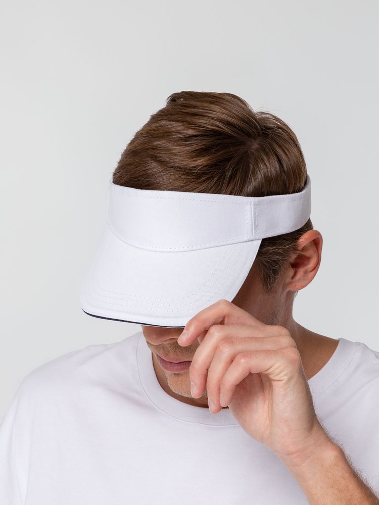 В теплый солнечный день козырек послужит отличной альтернативой бейсболке. Плотный козырек-сэндвич с контрастной вставкой. Регулируемая застежка на липучке.