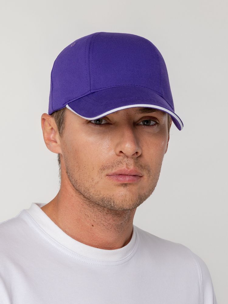 Бейсболка Canopy, фиолетовая с белым кантом