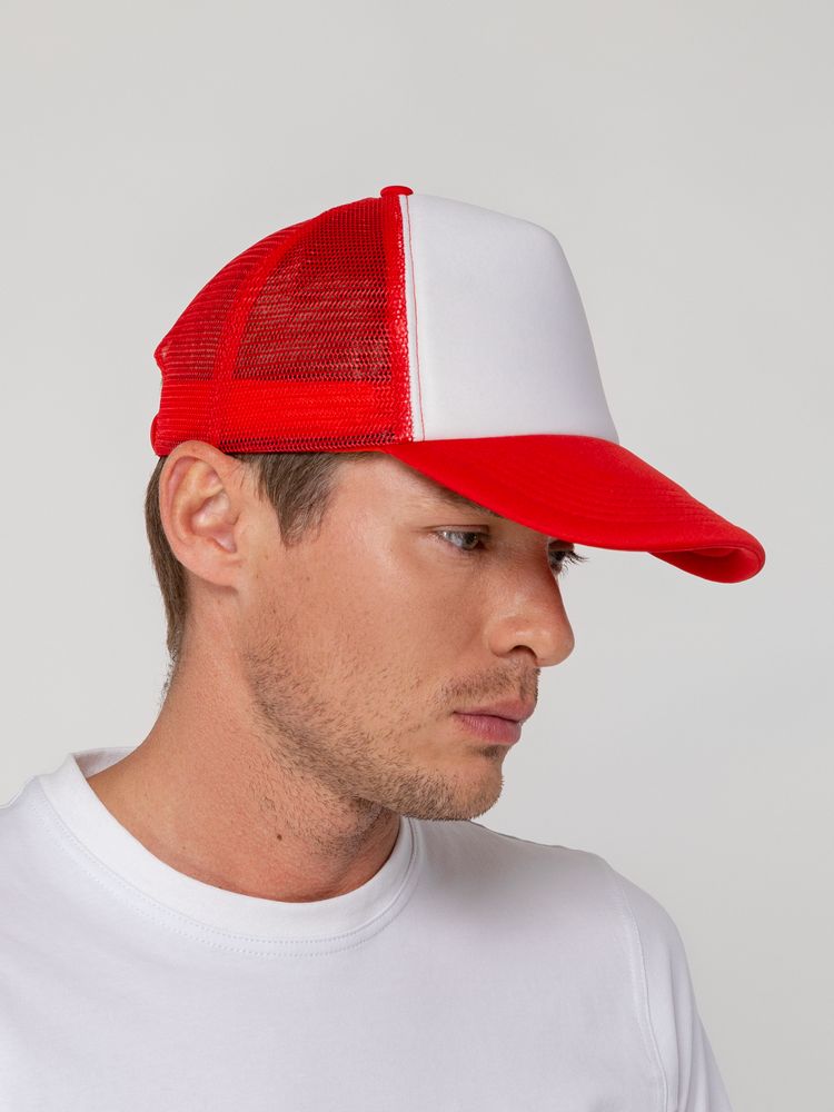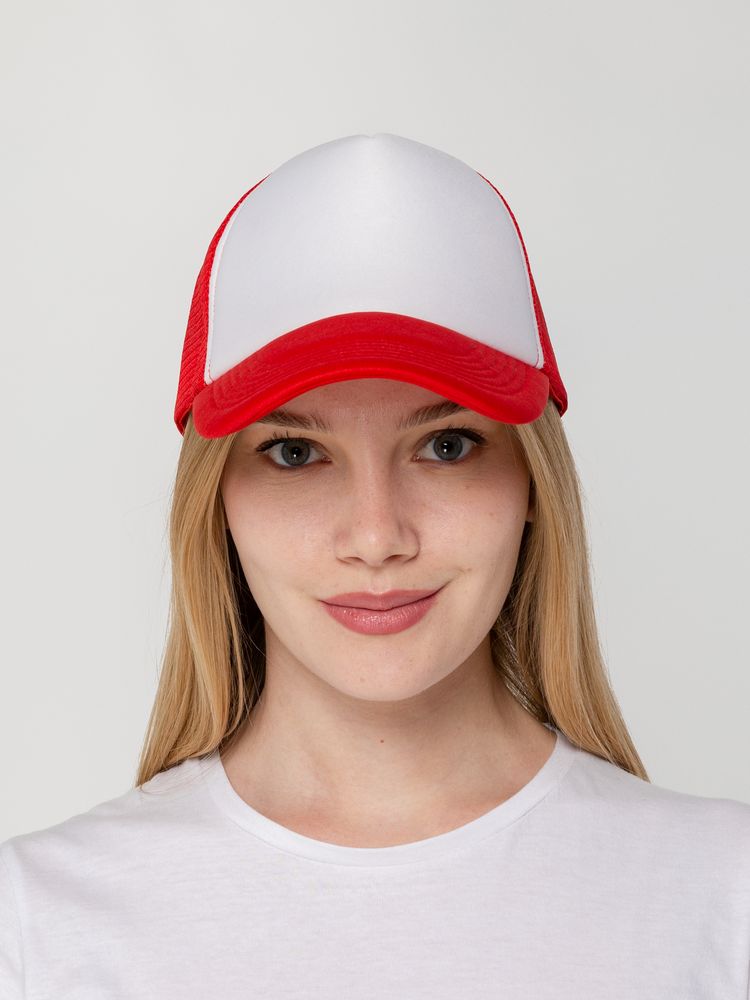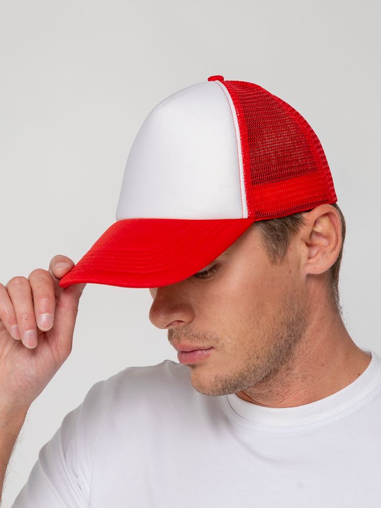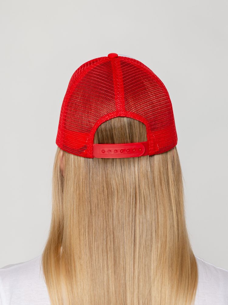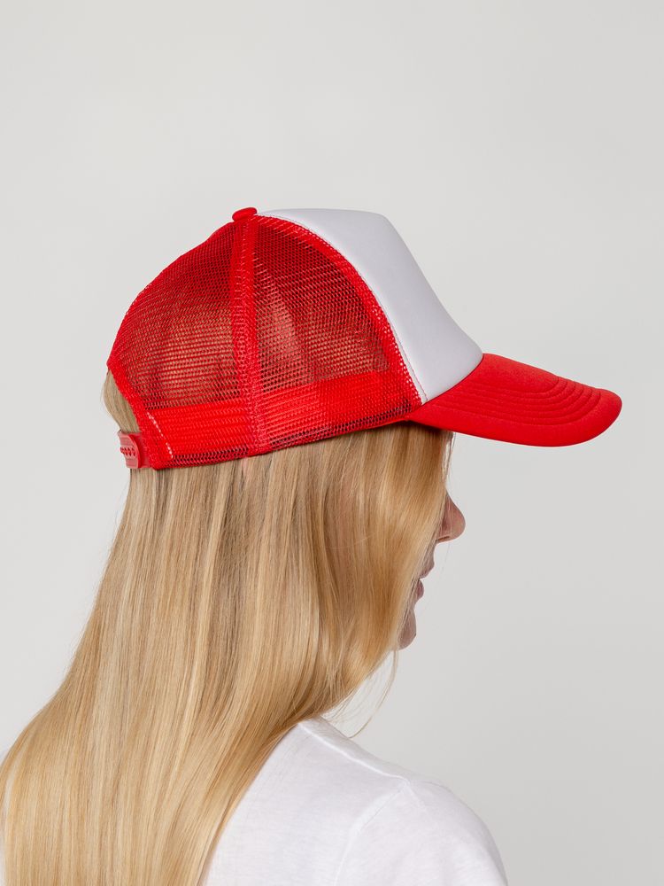 Стандартная модель с 5 клиньями без лобового шва в нестандартном исполнении. Передний клин и козырек выполнены из полиэстера с наполнителем из поролона, боковые и задние клинья — из сетки. Размер регулируется с помощью пластиковой застежки.