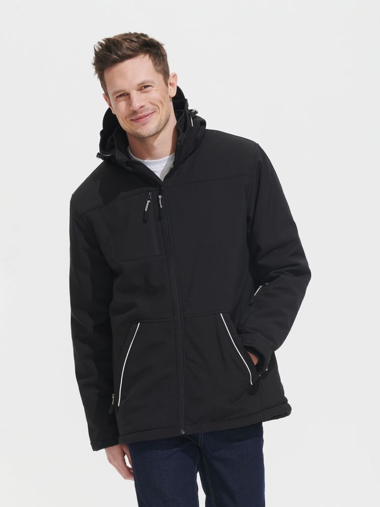 Куртка из материала Softshell. Водостойкость: 8000 мм, паропроницаемость: 1000 г/м² · 24 часа.