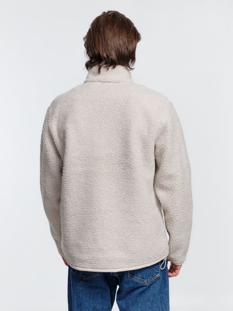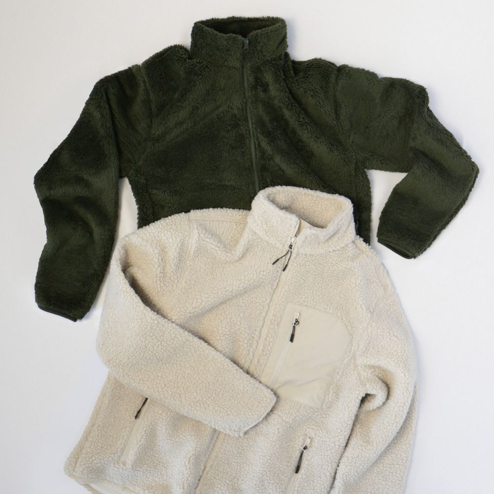 Куртка унисекс из фактурной искусственной шерпы с гладкой отделкой из таслана.