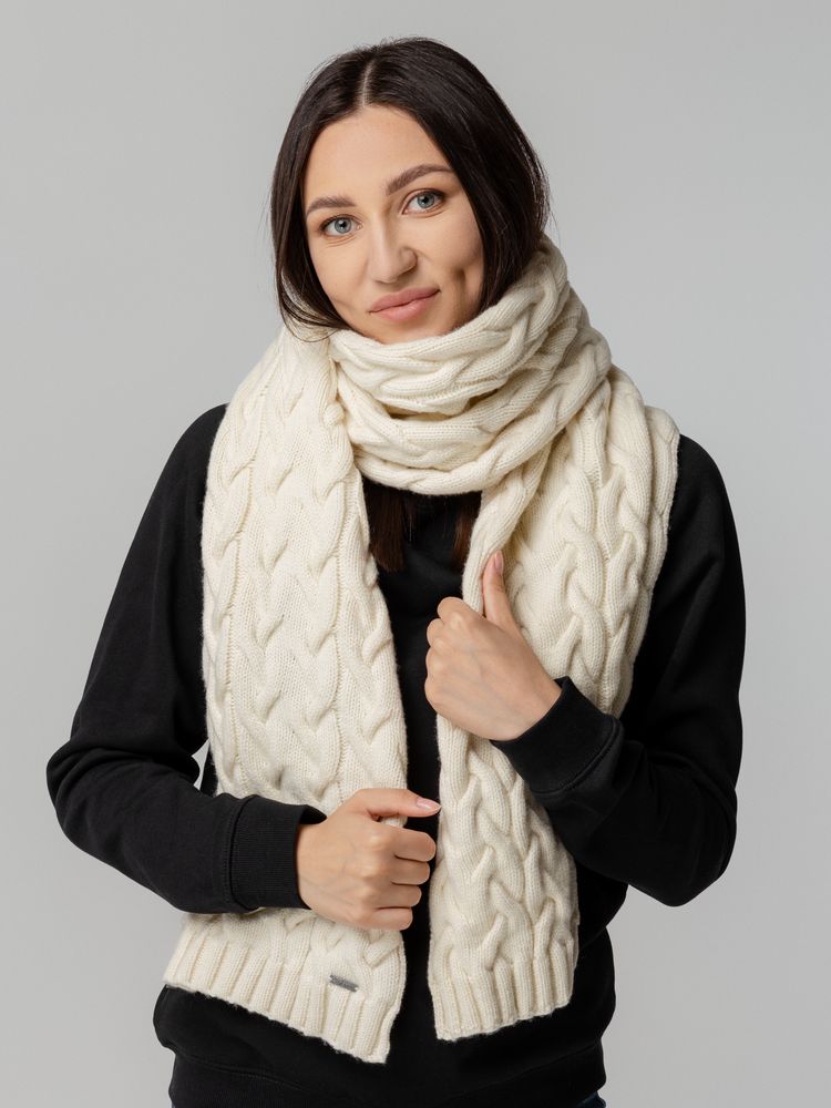 Длинный фактурный шарф — классика, которая не устаревает. Такая модель добавит уюта и шарма в зимний образ, станет его притягательным акцентом. Объемный шарф Loren моментально окутывает своим теплом и согревает в любой холод. Однослойный шарф фактурной вязки с объемными косами. Поставляется в пакете с липким краем.