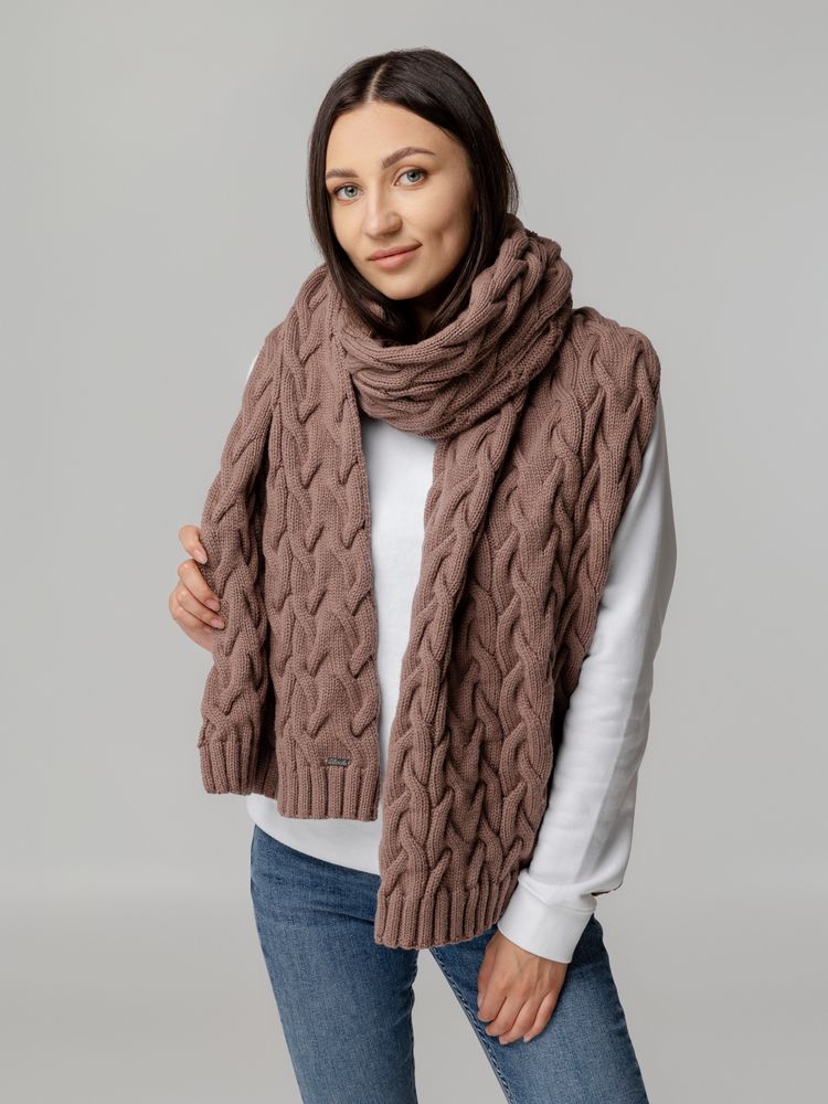 Длинный фактурный шарф — классика, которая не устаревает. Такая модель добавит уюта и шарма в зимний образ, станет его притягательным акцентом. Объемный шарф Loren моментально окутывает своим теплом и согревает в любой холод. Однослойный шарф фактурной вязки с объемными косами. Поставляется в пакете с липким краем.