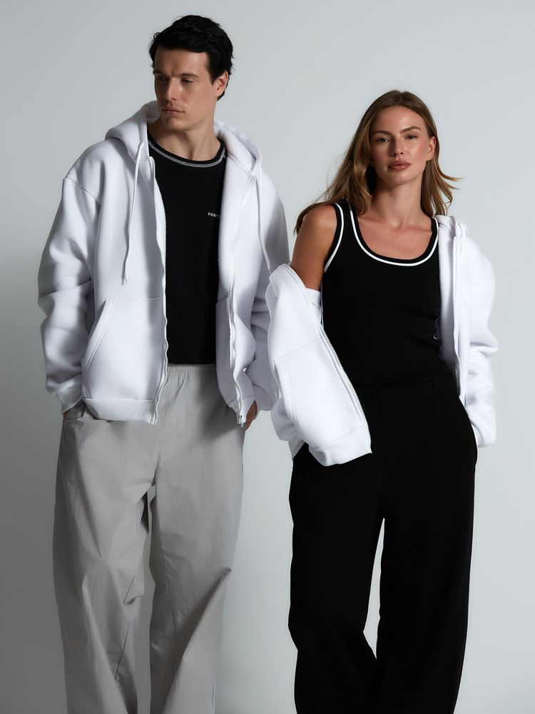 16883.30 - Толстовка унисекс оверсайз Zippy, черная 16883.60 - Толстовка унисекс оверсайз Zippy, белая
