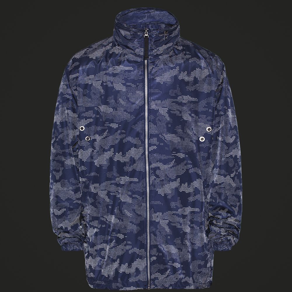 Ветровка с капюшоном из ткани с водоотталкивающей пропиткой и светоотражающим рисунком.