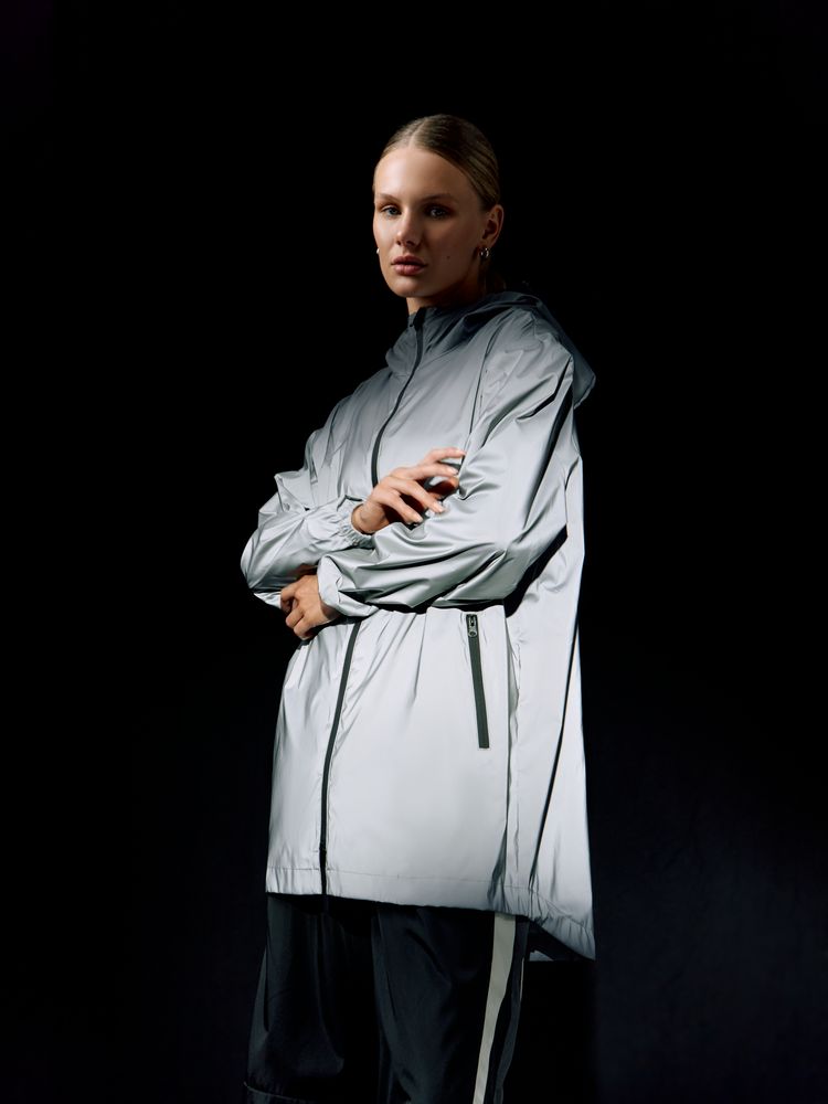 Световозвращающие элементы позволяют быть замеченным в темное время суток. Это особенно важно для безопасности дорожного движения. Парка Manifest полностью изготовлена из светоотражающей ткани — вас будет видно издалека. Парка унисекс на молнии с капюшоном.