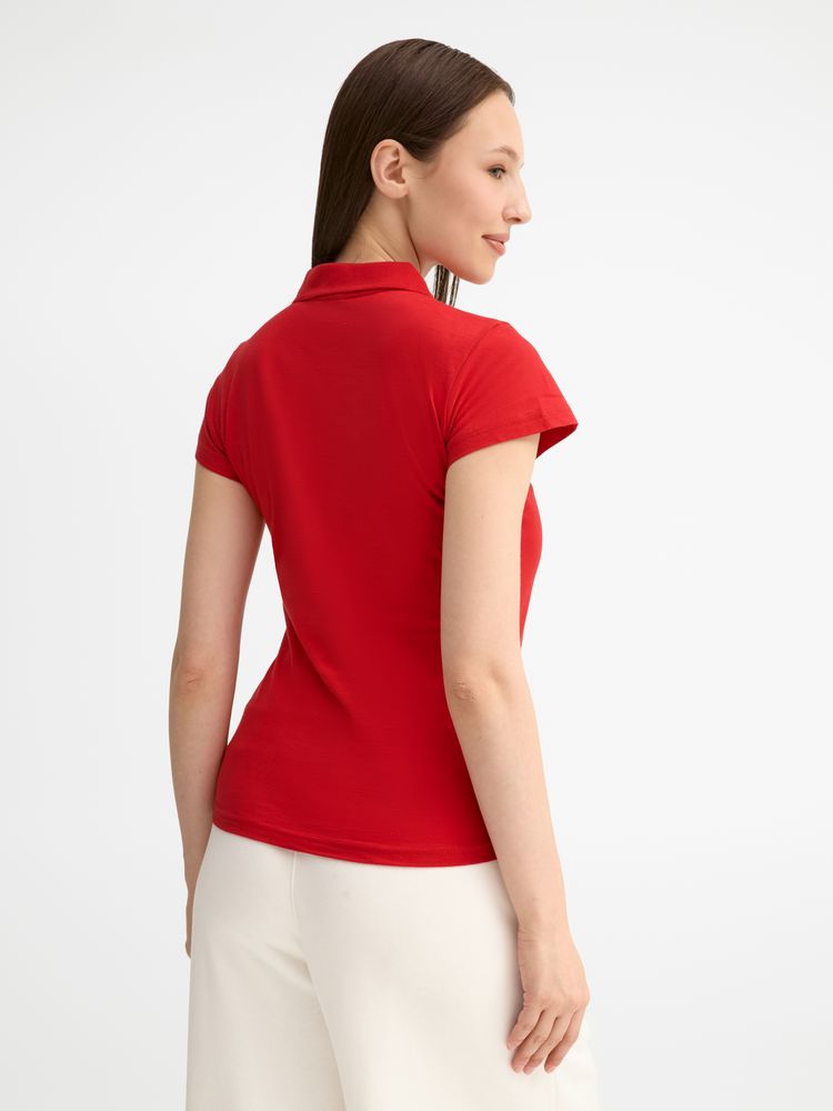 Базовая женская рубашка поло приталенного силуэта. Выполнена из кулирной глади.