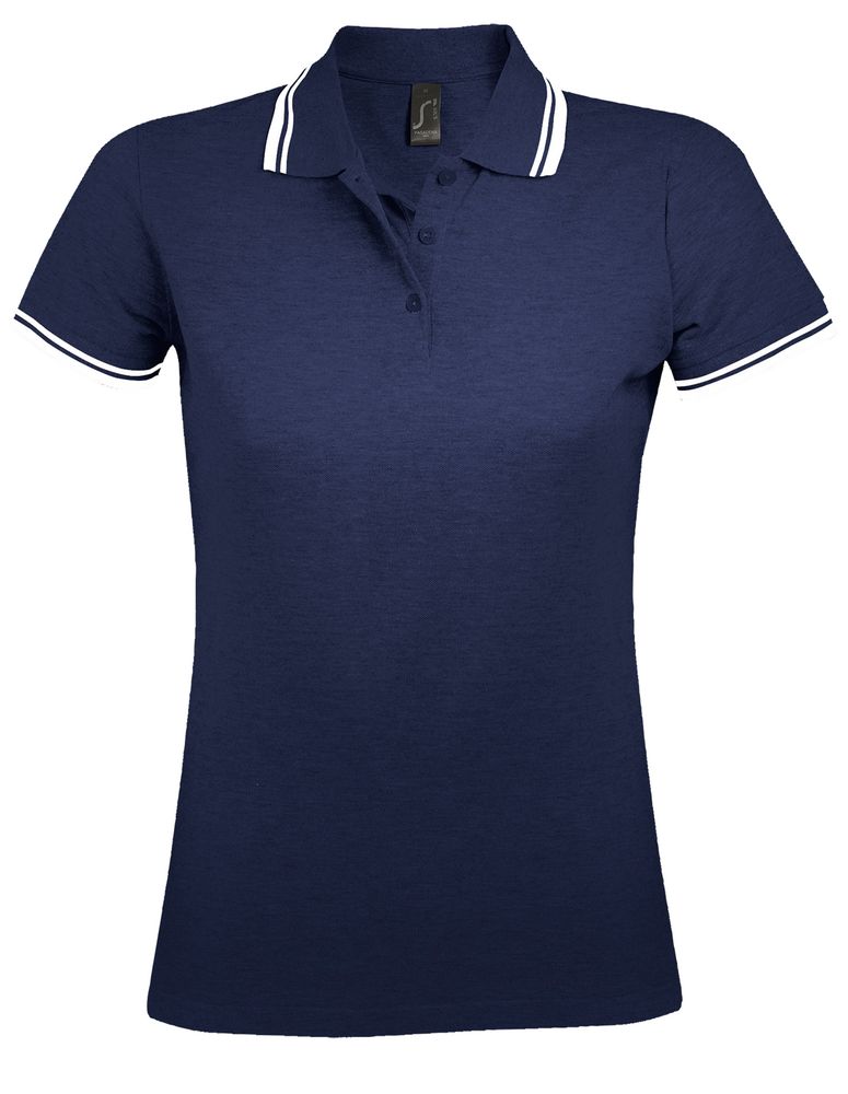 Рубашка поло женская Pasadena Women 200 с контрастной отделкой, темно-синяя с белым