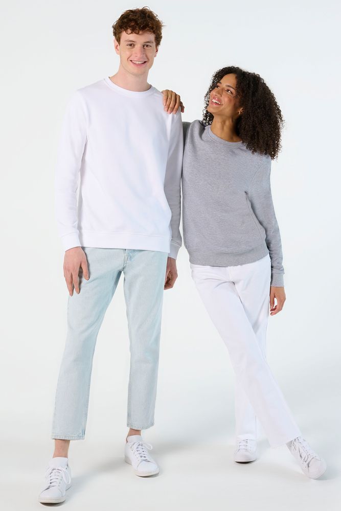 Свитшот унисекс из органического хлопка с круглым вырезом и втачным рукавом. Лейбл производителя в боковом шве изнутри, в шве горловины — только бирка с размером, что позволяет вам нанести свой логотип.