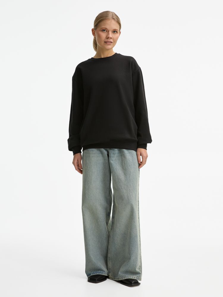 Свитшот унисекс из хлопка и переработанного полиэстера с круглым вырезом и втачным рукавом.