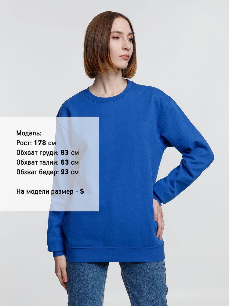 Свитшот унисекс из хлопка и переработанного полиэстера с круглым вырезом и втачным рукавом.