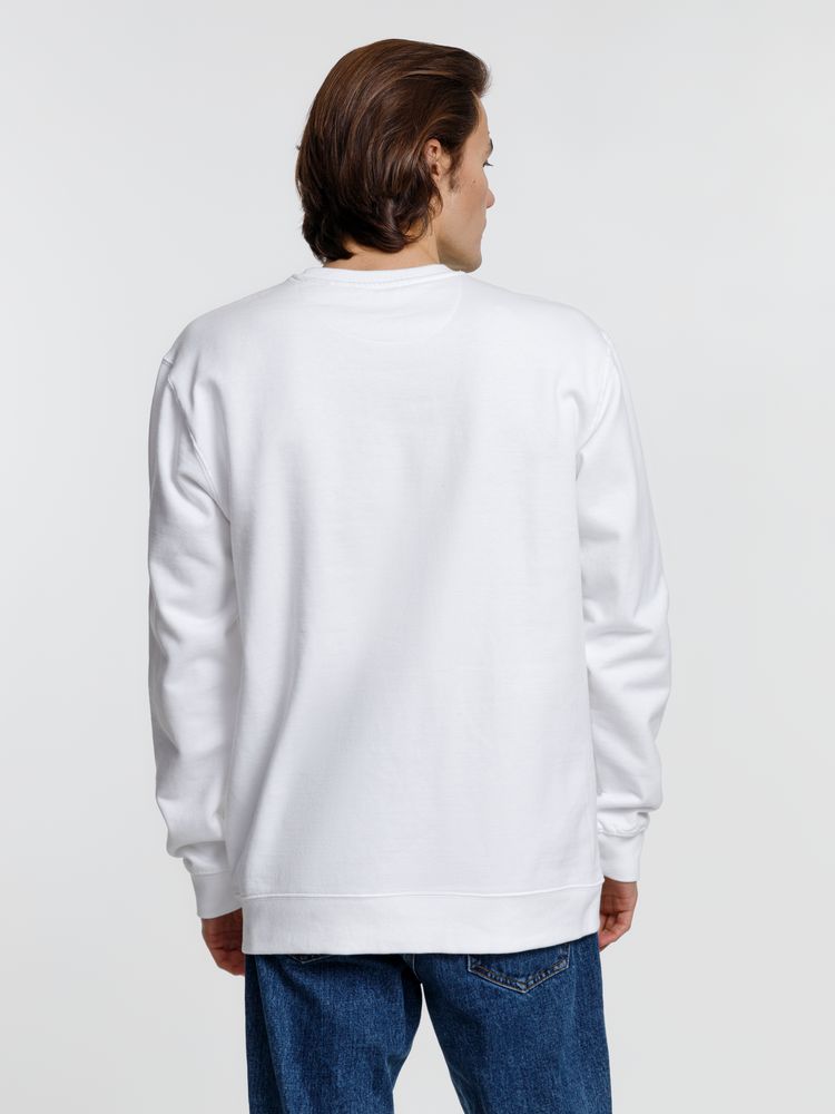 Свитшот унисекс из хлопка и переработанного полиэстера с круглым вырезом и втачным рукавом.