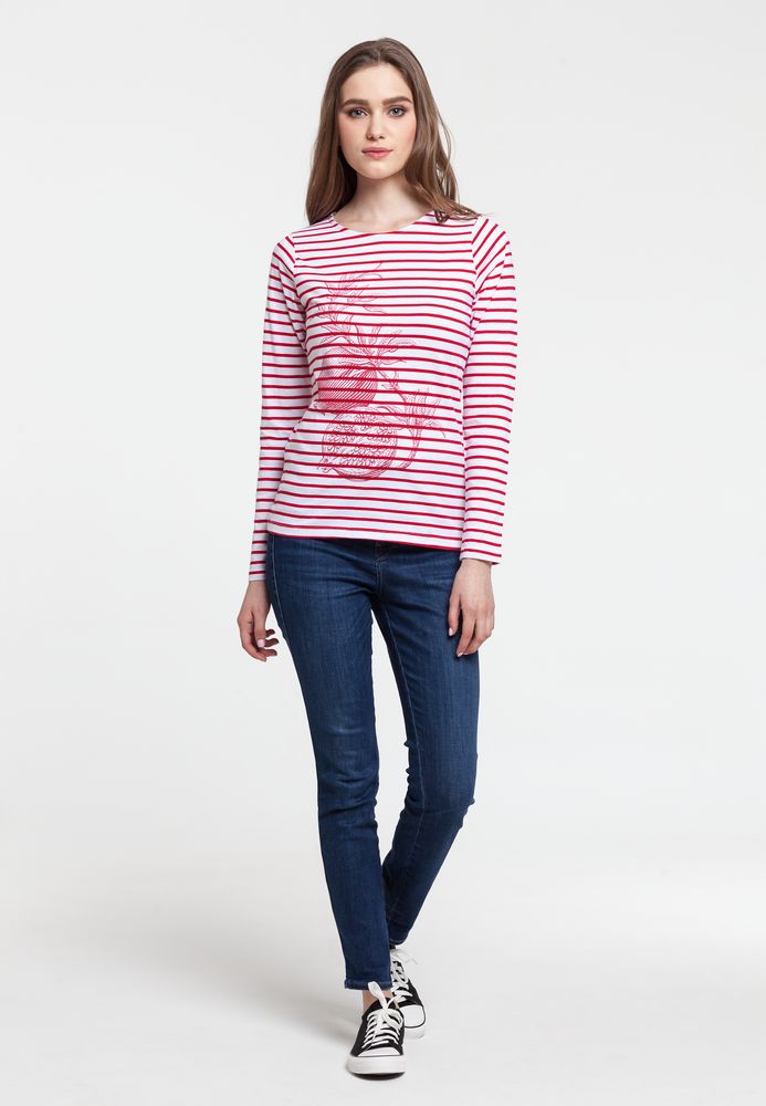 Кроеная футболка с длинными рукавами и круглым воротом из 100% гребенного хлопка. Приталенная модель с контрастной отделкой из тонкого денима по внутренней стороне ворота и боковым разрезам снизу.