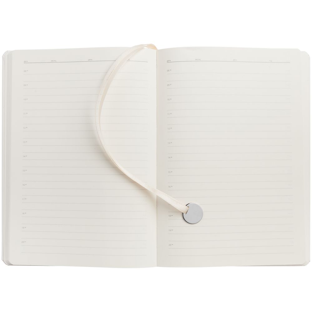 ежедневник недатированный: - твердая обложка из материала Winner; - 256 страниц; - ляссе в цвет обложки с металлической шильдой; - бумага — тонированная, плотность 70 г/м²; - форзац и нахзац — тонированные.