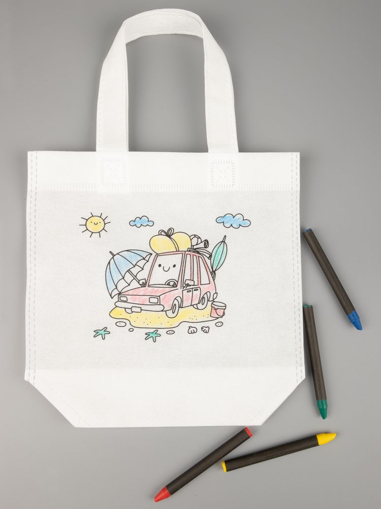 Сумка для раскрашивания Create позволит раскрыть творческий потенциал ребенка и создать оригинальный аксессуар, которого больше ни у кого не будет! Можно оставить чистым, а можно напечатать заготовку для раскраски. В наборе сумка и набор из 4 восковых карандашей. Ширина донной складки 8,5 см. Поставляется в индивидуальном пакете с липким краем.