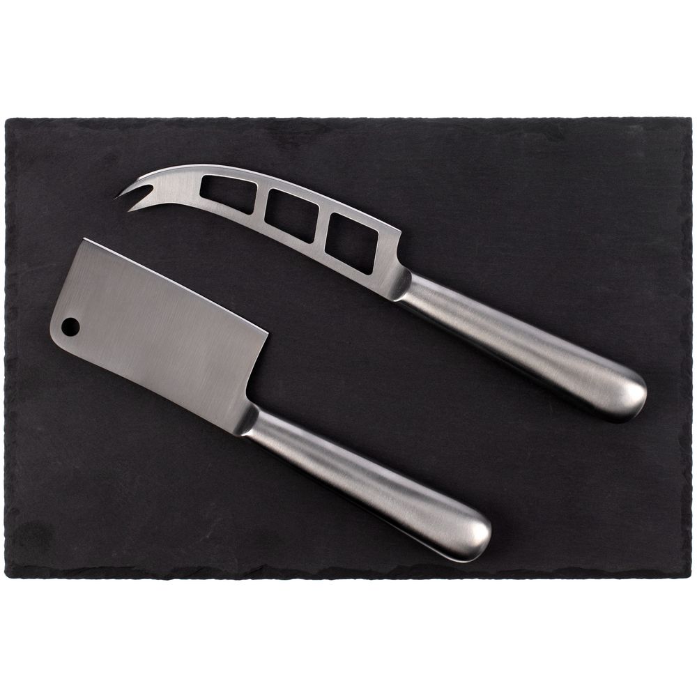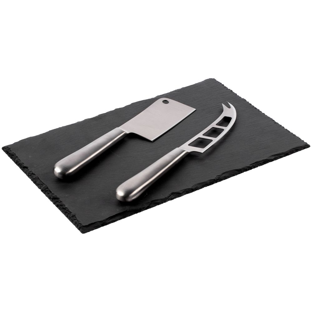 Сырный набор Tyros — отличный подарок для ценителя всех сортов сыра. Ножом-топориком легко расколоть сыры даже самых твердых сортов, а нож с воздушными карманами для сыров средней мягкости поможет справиться как с достаточно плотным чеддером, так и с нежными бри и камамбером. Отверстия на лезвии сырного ножа нужны для проникновения воздуха, который не дает слайсам мягкого сыра сминаться и прилипать к ножу при нарезке. Раздвоенный кончик выполняет роль вилки, которой удобно сервировать нарезанный сыр. Выполненная из сланца доска идеальна для подачи закусок.В комплекте сланцевая доска, нож-топорик для твердых сортов сыра, нож для сыров средней мягкости. Поставляется в индивидуальной подарочной коробке с ложементом.