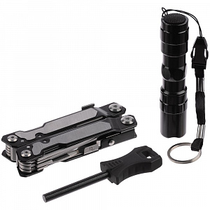 • Набор Forster: мультиинструмент, фонарик, огниво, черный