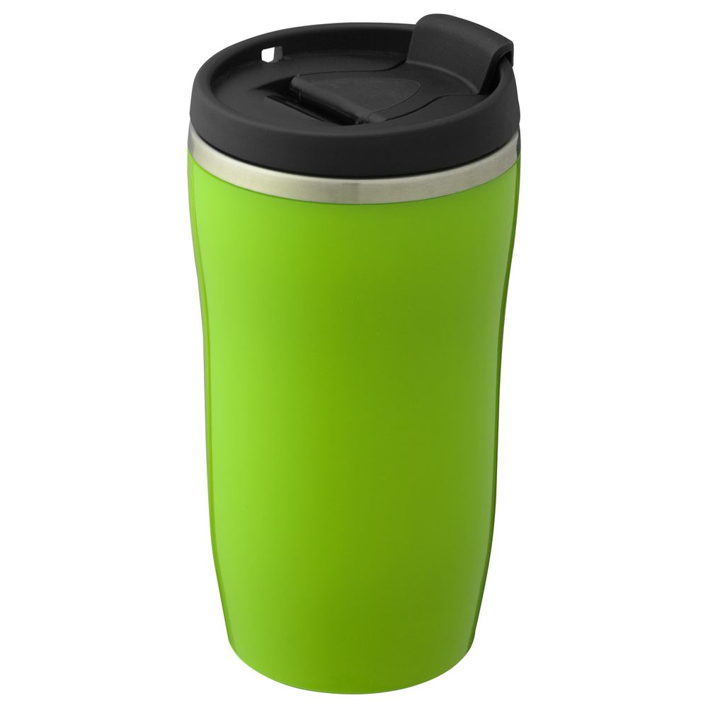 Двухслойная конструкция из пластика снаружи и пищевой нержавеющей стали внутри. Герметичная завинчивающаяся крышка с откидным клапаном для питья. В отверстие в крышке можно вставить шнурок для удобного ношения стакана на руке. Шнурок в комплект не входит.
