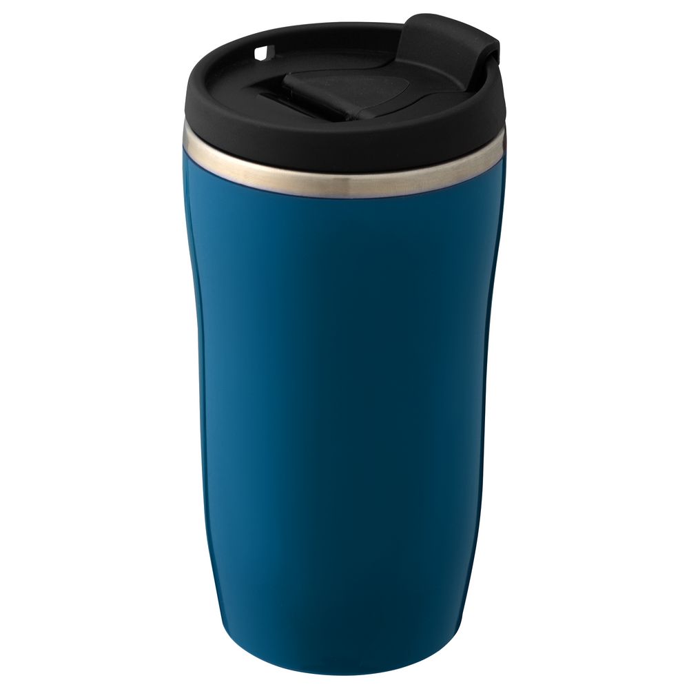 Двухслойная конструкция из пластика снаружи и пищевой нержавеющей стали внутри. Герметичная завинчивающаяся крышка с откидным клапаном для питья. В отверстие в крышке можно вставить шнурок для удобного ношения стакана на руке. Шнурок в комплект не входит.