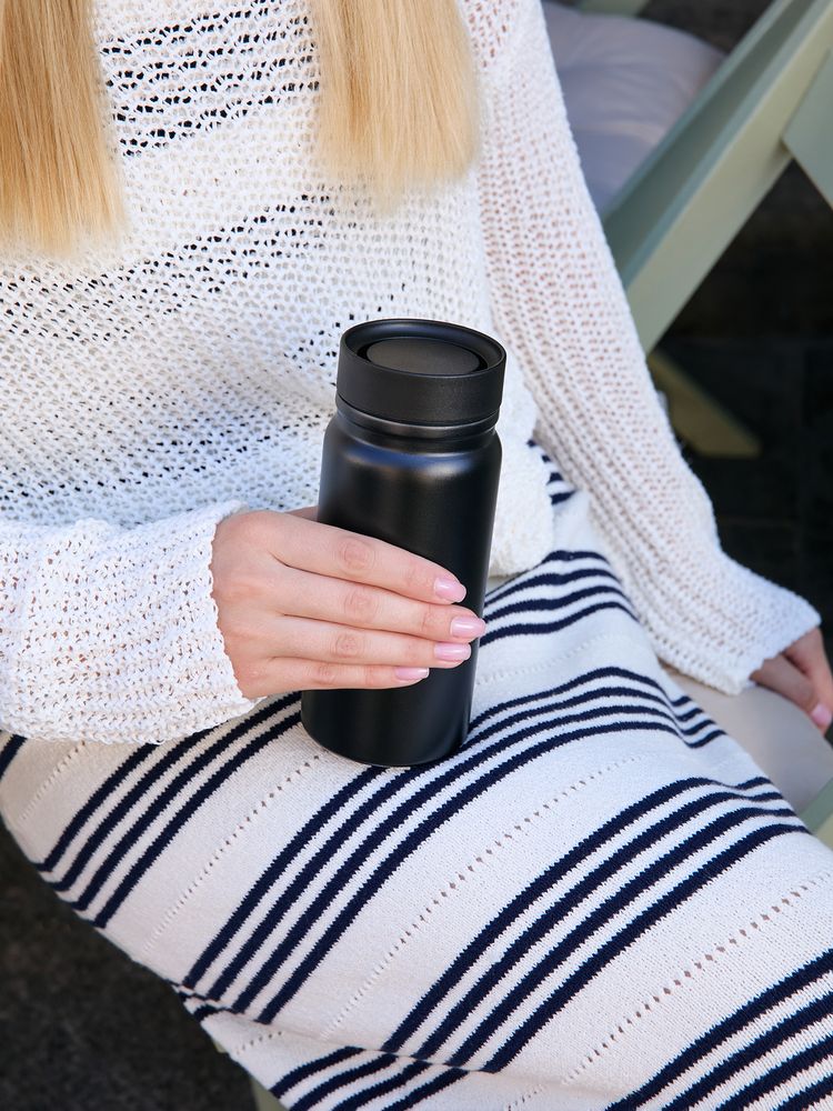 • Герметичная завинчивающаяся крышка с силиконовым уплотнителем и питьевой системой с клапаном — технология 360° позволяет одним нажатием открывать кружку и пить с любой стороны