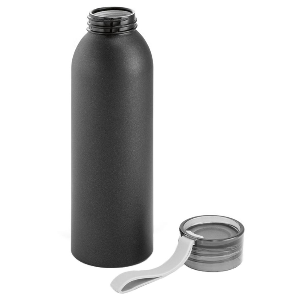 Спортивная бутылка с винтовой крышкой из полипропилена и силиконовой петлей для транспортировки.