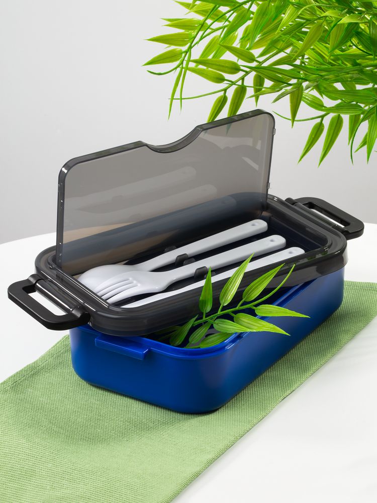 Удобная конструкция с крышкой на защелках обеспечивает надежную фиксацию. Специальное отделение под крышкой позволяет хранить столовые приборы, освобождая дополнительное пространство в сумке. Емкость 800 мл.