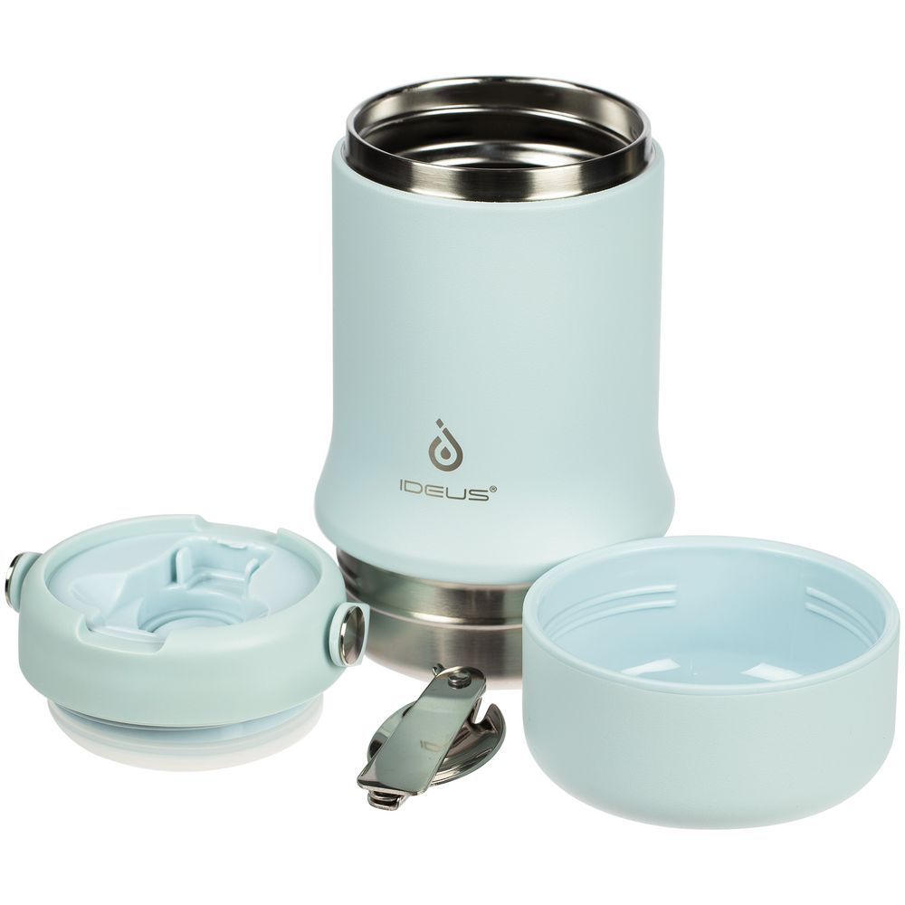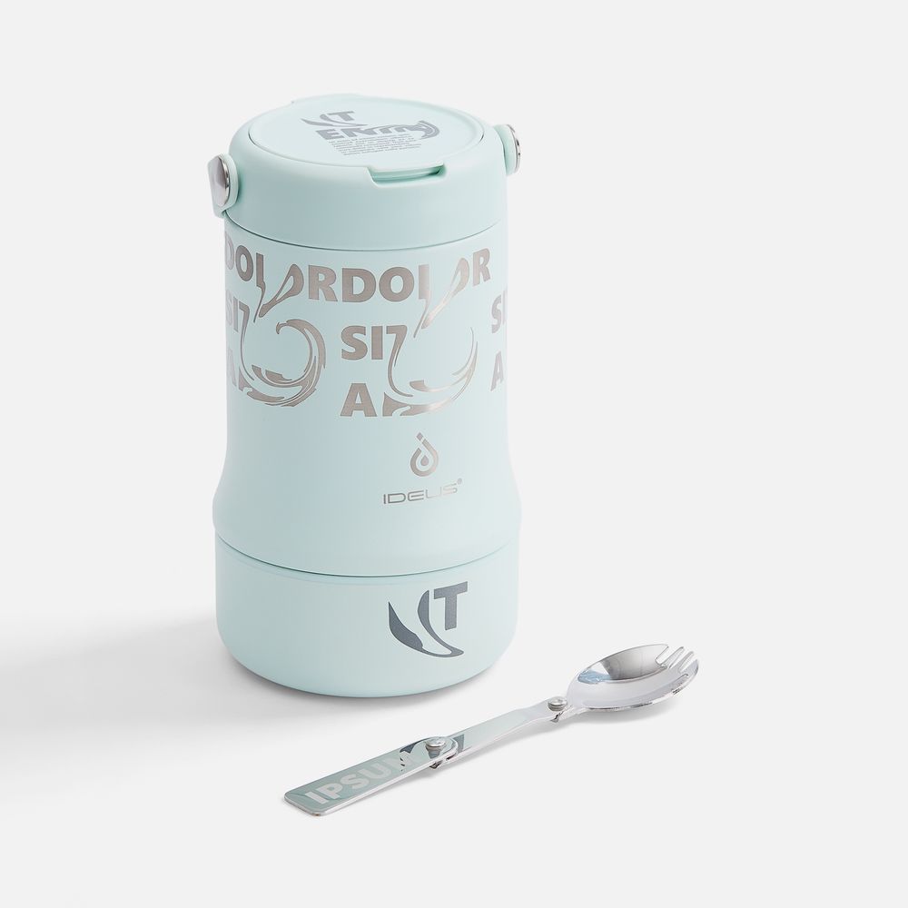 Tabenodo — универсальный многофункциональный термос для работы, школы, похода и путешествия. В компактном корпусе разместились ложка, тарелка и емкость для любимого блюда. Матовая поверхность приятна на ощупь, а силиконовая ручка удобна для переноски. Емкость 590 мл.
