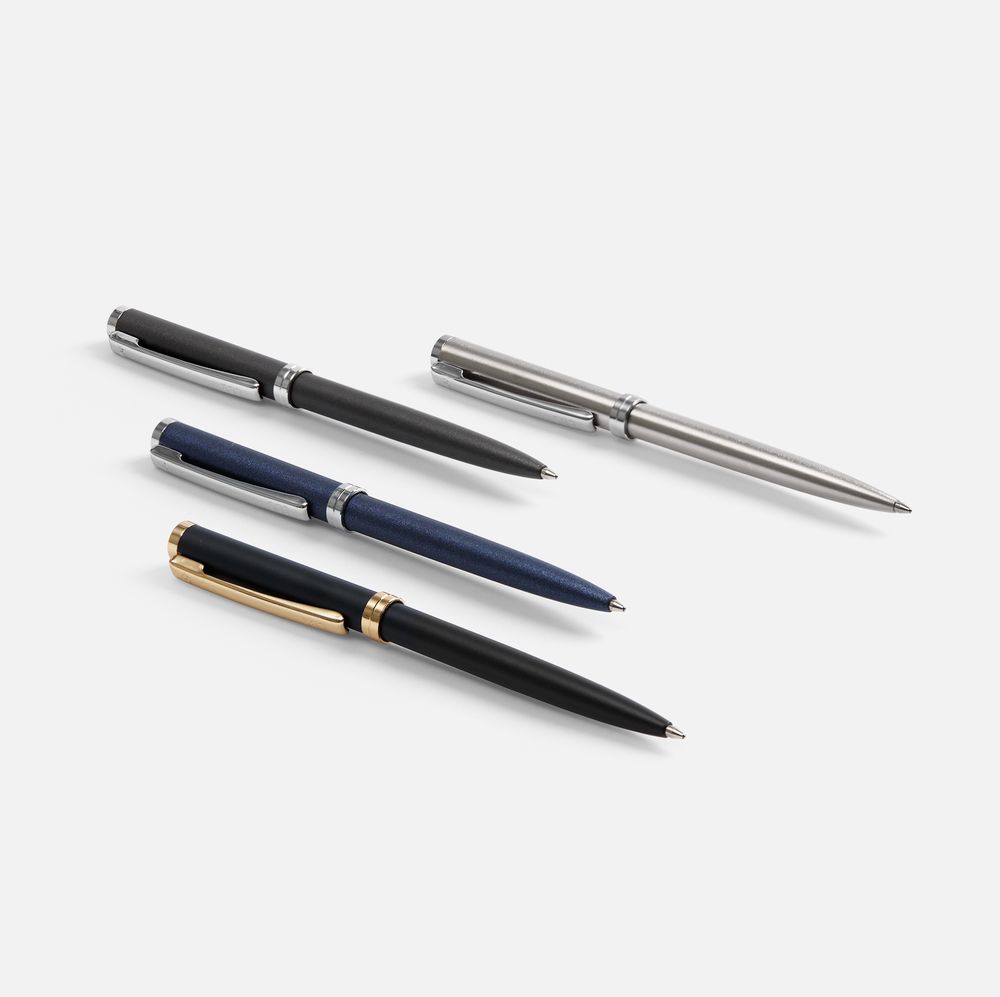 Механизм ручки: нажимной. Корпус ручки разбирается, стержень легко заменить. Стержень с синими чернилами. Цвет корпуса после гравировки не соответствует цвету деталей (золотистое изображение).