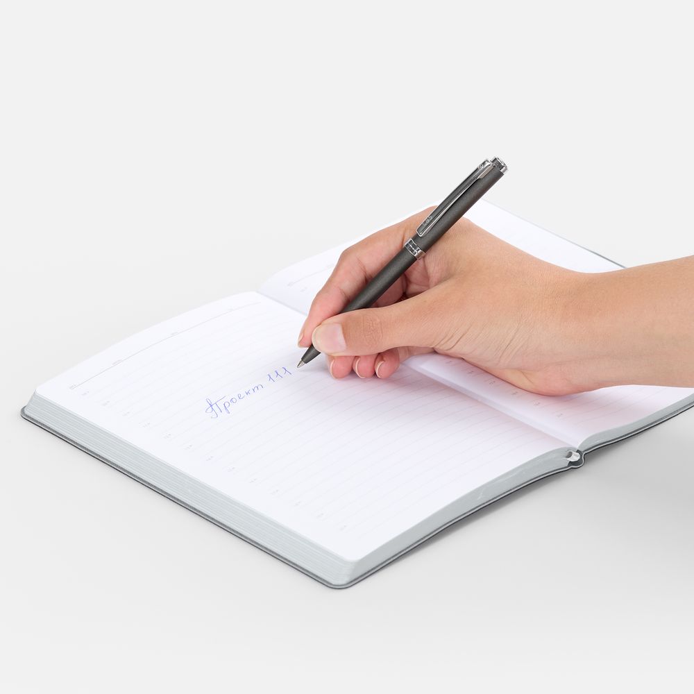 Механизм ручки: нажимной. Корпус ручки разбирается, стержень легко заменить. Стержень с синими чернилами. Цвет корпуса после гравировки не соответствует цвету деталей (золотистое изображение).