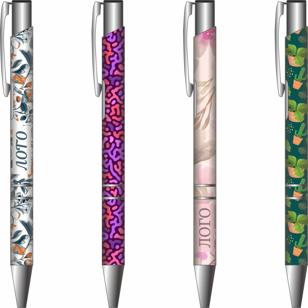 Ручка с глянцевыми хромированными деталями и лаконичным корпусом, который практически целиком может стать полем для нанесения.