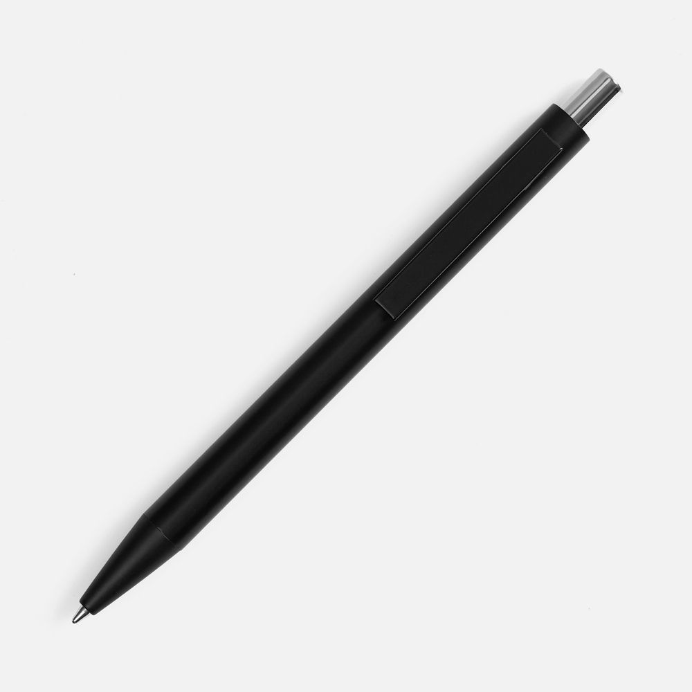 Ручка строгих форм в черном матовом корпусе с цветными деталями, которая точно может удивить, — гравировка на ней вскрывается цветом в тон кнопке.