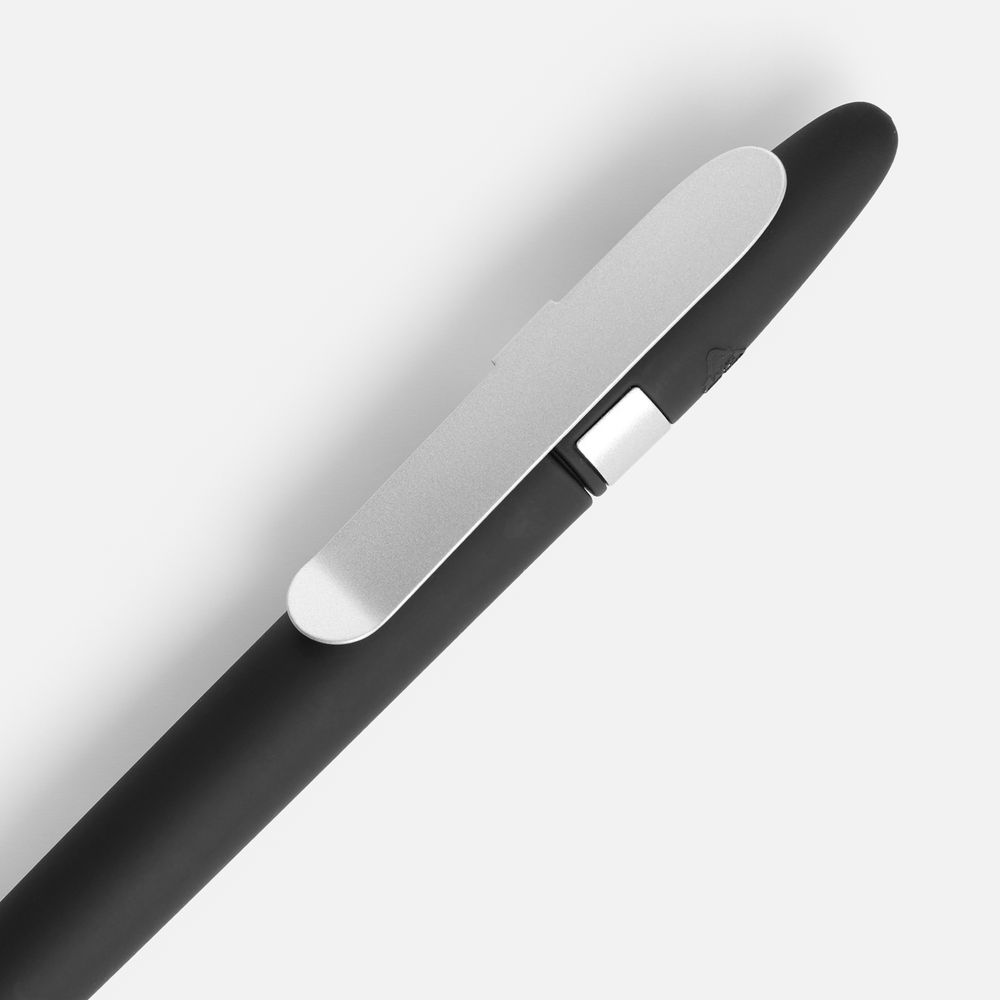 Крупный обтекаемый корпус с покрытием софт-тач. Изящный металлический клип — чтобы изящно и ненавязчиво выделить логотип.