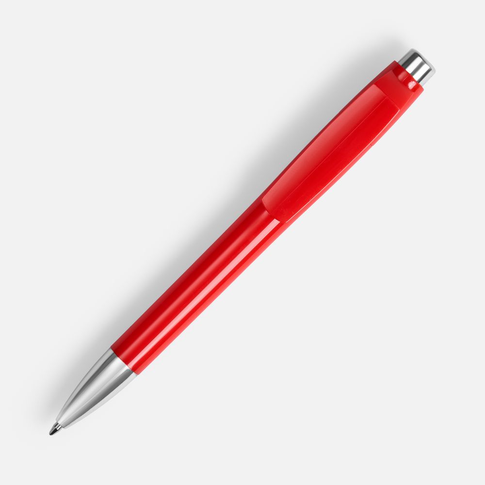 Пластиковая ручка с глянцевым корпусом и хромированными деталями. Большой клип идеален для нанесения логотипа компании.