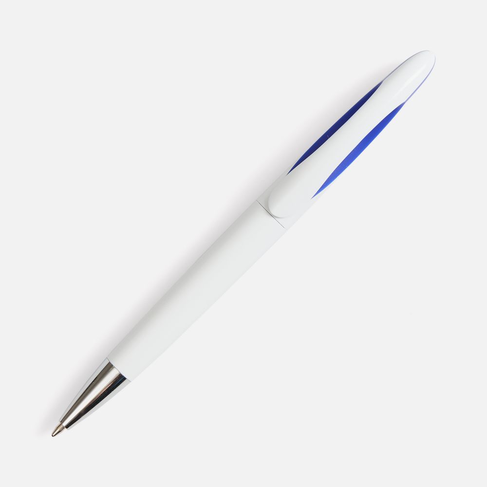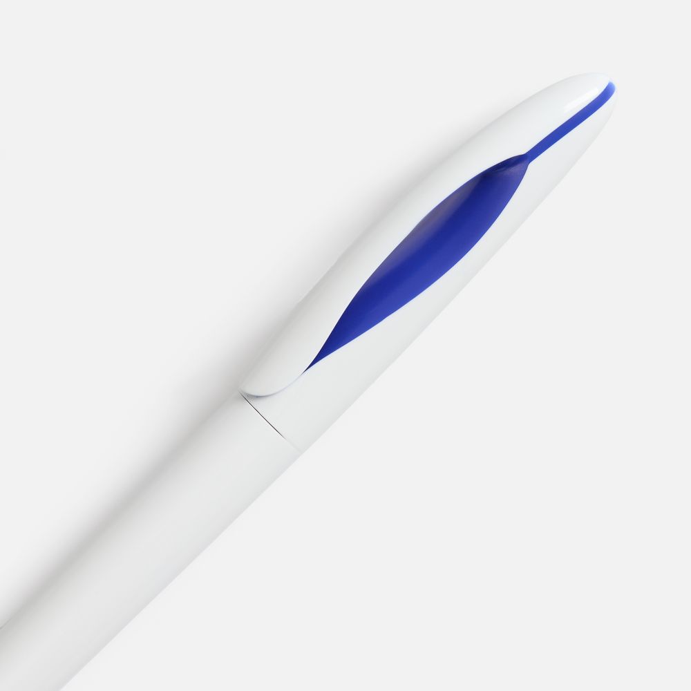 Шариковая ручка приятных округлых форм с белым глянцевым корпусом и цветовым акцентом. Механизм ручки: поворотный. Корпус ручки разбирается, стержень легко заменить. Стержень с синими чернилами.