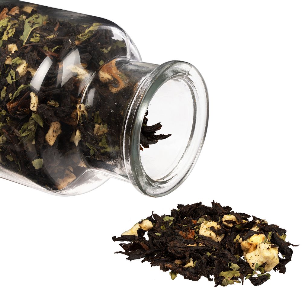 Черный крупнолистовой чай с кусочками ананаса, яблока и дробленой корицей обладает многогранной палитрой вкуса и аромата. В состав чая входят только натуральные ингредиенты, а чайные листья предварительно вымачиваются в соке ананаса: вкус напитка становится особо насыщенным и обогащенным. «Сокочай» станет прекрасным подарком для любителей необычных вкусовых сочетаний и здорового образа жизни.Состав: чай черный с ананасом и соком ананаса (чай черный байховый крупнолистовой, кусочки ананаса, сок ананаса), корица дробленая, яблоко сушеное, ароматизатор натуральный «яблоко». Вес нетто: 150 г Срок годности: 24 месяца