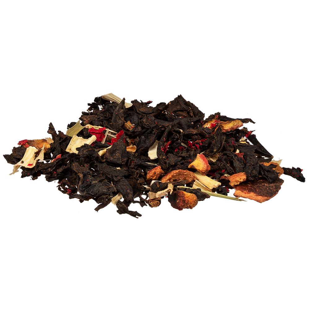 Состав: чай черный с ананасом и соком ананаса (чай черный байховый крупнолистовой, кусочки ананаса, сок ананаса), вишня сублимированная, цветки граната, корка граната, лемонграсс, ароматизатор натуральный «Вишня», ароматизатор натуральный «Апельсин».