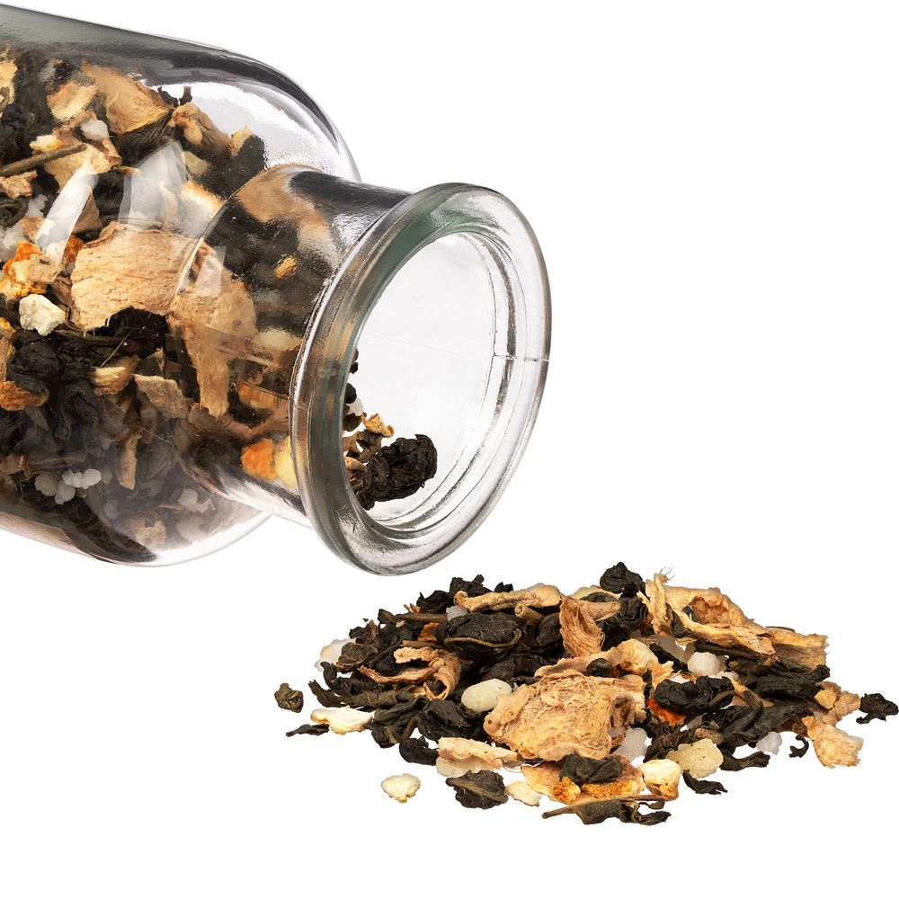 Зеленый крупнолистовой чай с кусочками имбиря, апельсином и медовыми гранулами обладает многогранной палитрой вкуса и аромата. В состав чая входят только натуральные ингредиенты, а чайные листья предварительно вымачиваются в имбирном соке: вкус напитка становится особо насыщенным и обогащенным. «Сокочай» станет прекрасным подарком для любителей необычных вкусовых сочетаний и здорового образа жизни. Поставляется в стеклянной бутылке с пробкой.