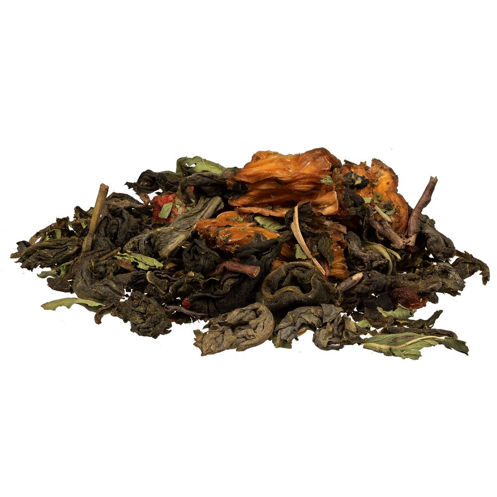 Зеленый крупнолистовой чай с кусочками ананаса, сублимированной клубникой и сушеной мятой обладает многогранной палитрой вкуса и аромата. В состав чая входят только натуральные ингредиенты, а чайные листья предварительно вымачиваются в соке ананаса: вкус напитка становится особо насыщенным и обогащенным. «Сокочай» станет прекрасным подарком для любителей необычных вкусовых сочетаний и здорового образа жизни. Поставляется в стеклянной бутылке с пробкой.