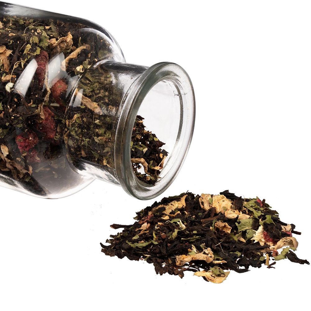 Черный крупнолистовой чай с кусочками имбиря, сублимированной малиной и сушеной мятой обладает многогранной палитрой вкуса и аромата. В состав чая входят только натуральные ингредиенты, а чайные листья предварительно вымачиваются в соке имбиря: вкус напитка становится особо насыщенным и обогащенным. «Сокочай» станет прекрасным подарком для любителей необычных вкусовых сочетаний и здорового образа жизни. Поставляется в стеклянной бутылке с пробкой.