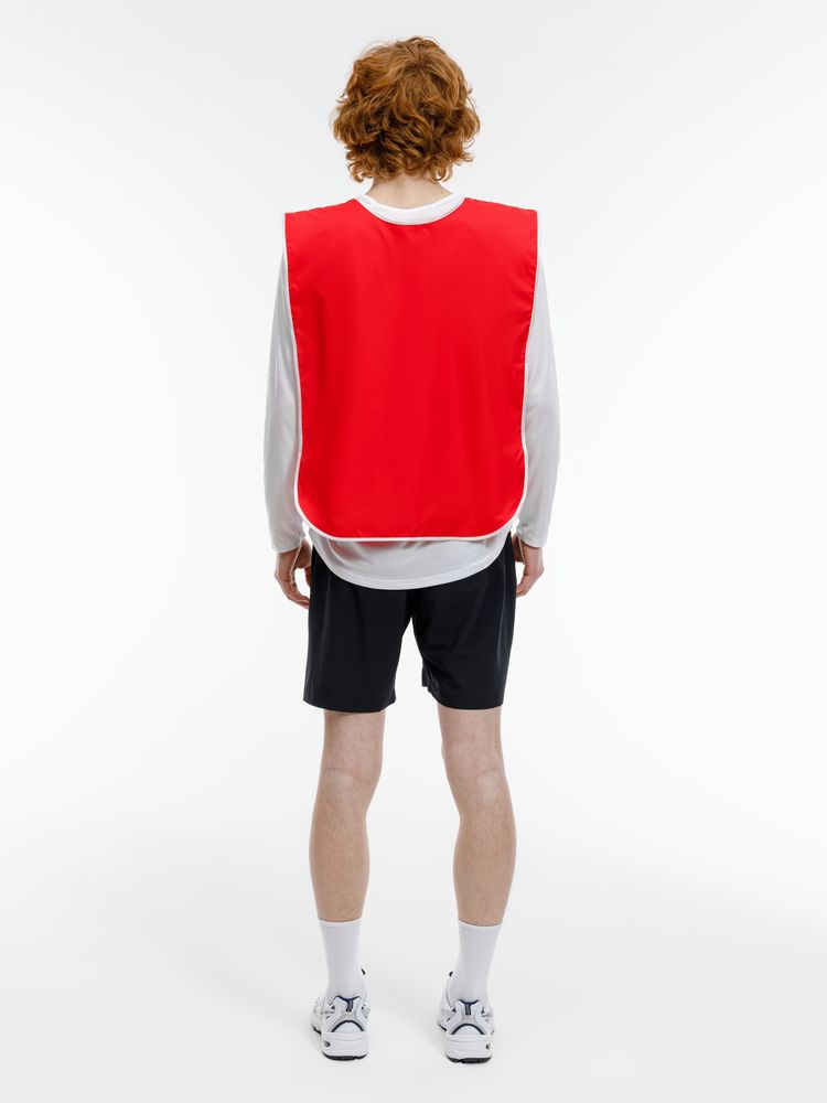 Манишка имеет свободный крой и резинки по бокам и не стесняет движения. Прекрасно подходит для размещения логотипа, фамилии или номера участника. Размер резинок 15х1,8 см. Для печати переменных данных (ФИО, порядковый номер) используйте термонаклейку.