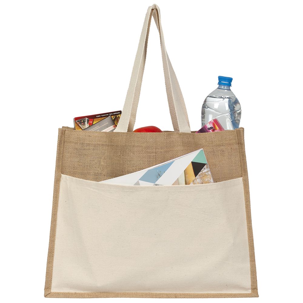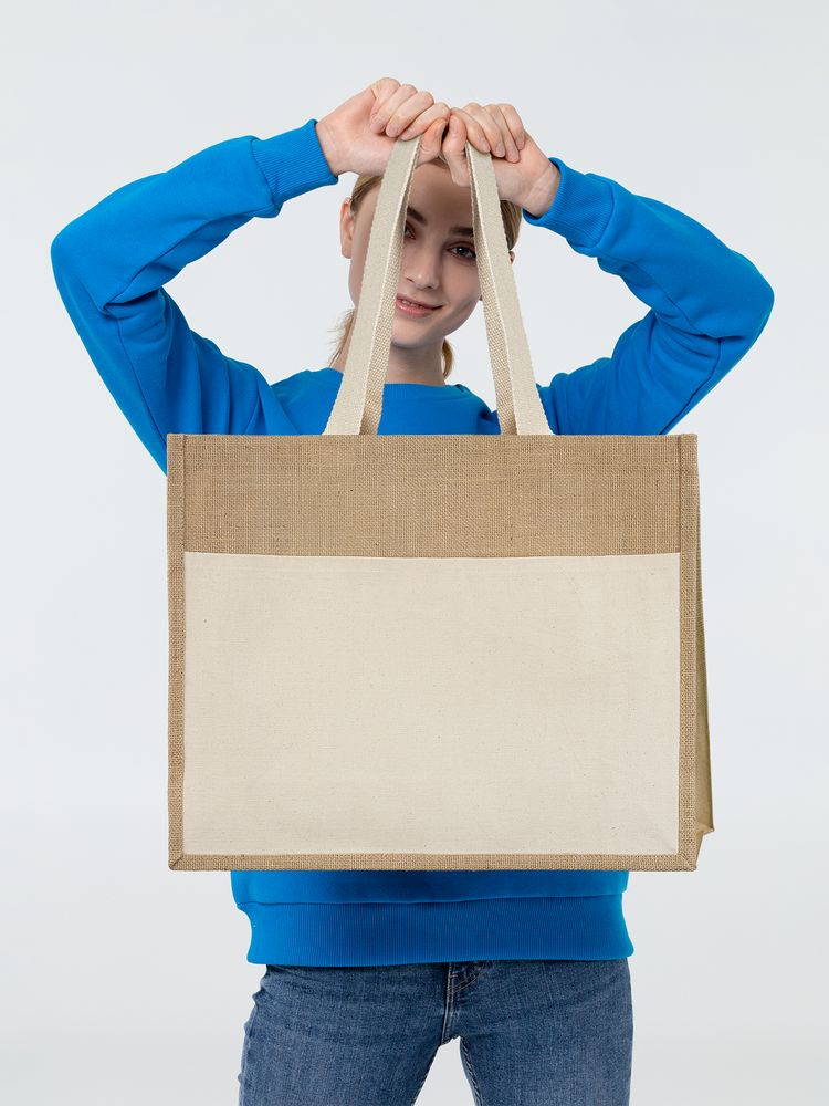 Сумки из джута — модные, практичные, долговечные изделия — отлично подходят компаниям, которые заботятся и о своем имидже, и об окружающей среде. Сумка имеет один накладной карман на фронтальной стороне. Выдерживает нагрузку до 10 кг.
