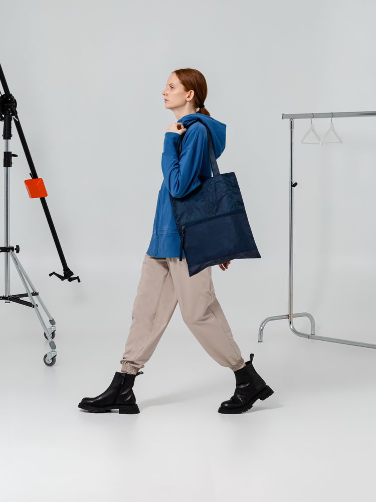 Цвет Outer Space лег в основу коллекции сумок Triangel, позволяя создать модное монохромное сочетание с изделиями Manevr темно-синего цвета. Изделия изготовлены из шелковистого полиэстера, в отделке использована лазерная перфорация паттерна.