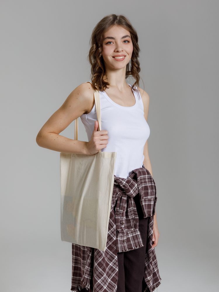 Классический шопер из переработанного хлопка. Неокрашенное полотно делает сумку настоящим универсальным холстом для логотипов и других маркетинговых сообщений.Способ обработки внутреннего шва: оверлок. Выдерживает нагрузку до 6 кг.