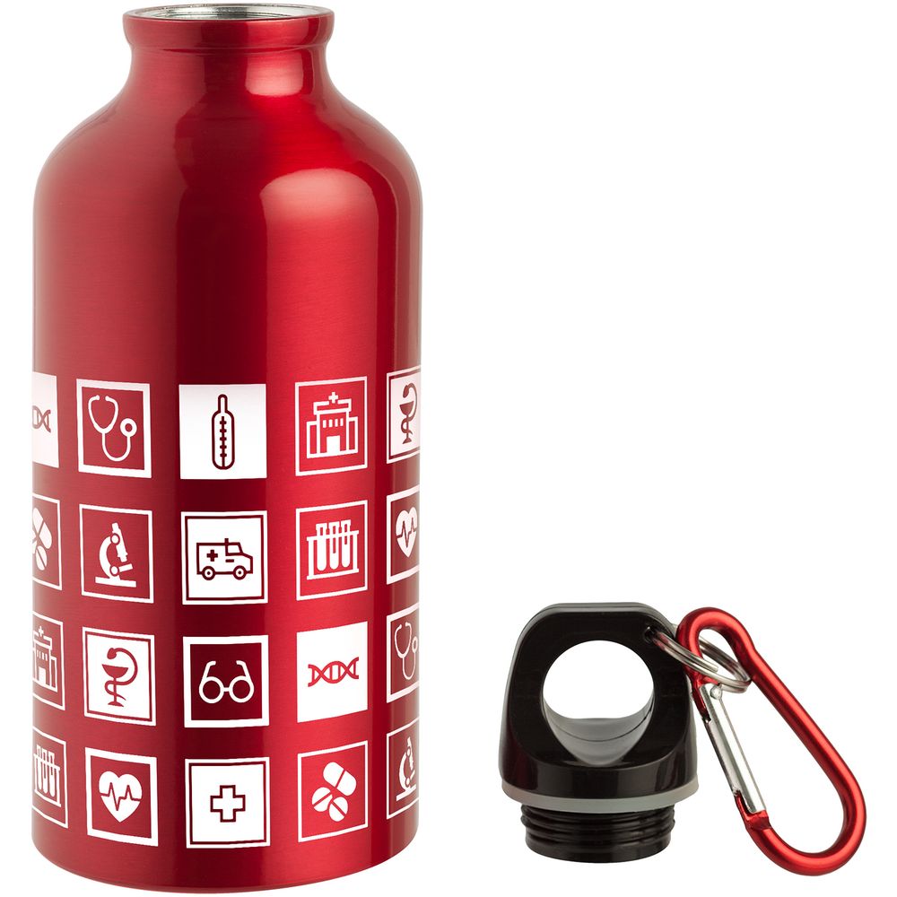 В каждой части общего рисунка изображены главные медицинские символы.Легкая и миниатюрная бутылка для воды с плотно завинчивающейся крышкой. Можно пристегнуть к рюкзаку или сумке, а также закрепить на карабине ключ от шкафчика на время тренировки. Подходит для большинства автомобильных и велосипедных держателей. Объем 400 мл.