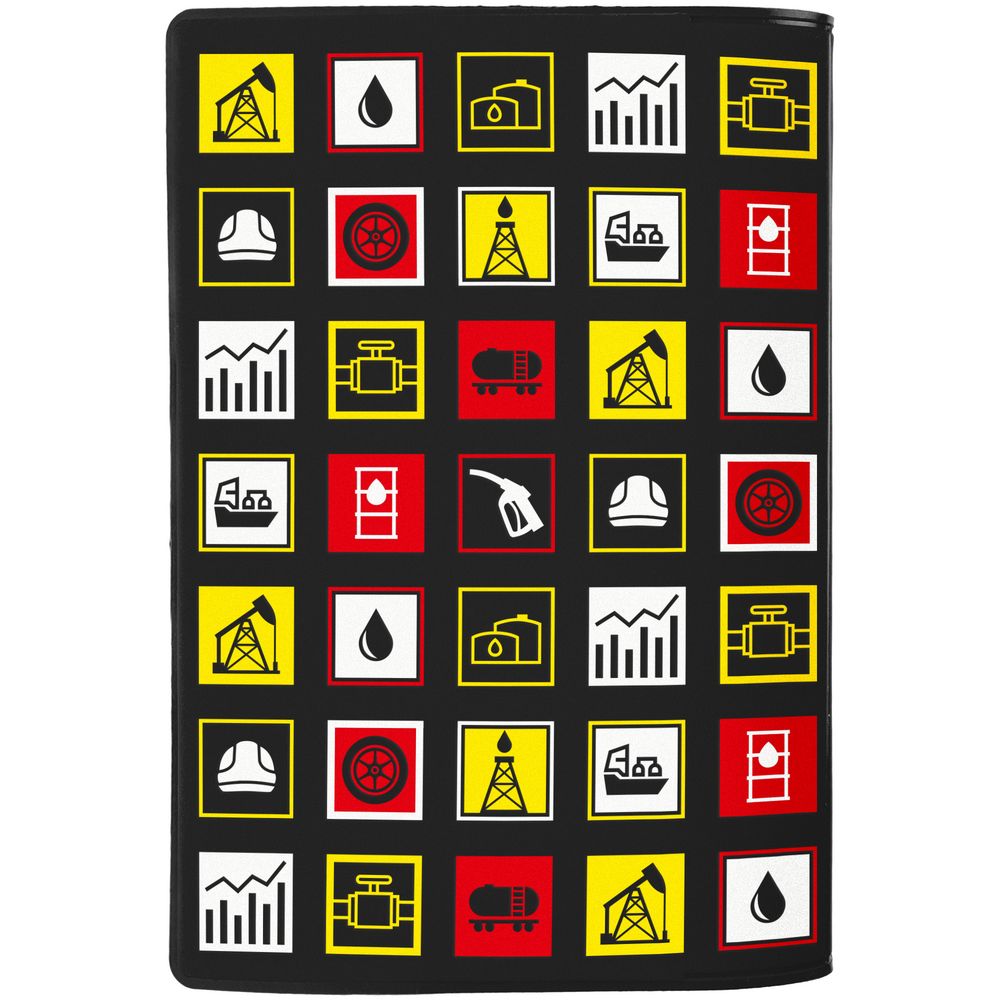 Прочный непромокаемый материал аксессуара сохранит главный документ сотрудника, а минималистичный дизайн создаст особую эстетику. В каждой части общего рисунка изображены главные символы нефтегазовой промышленности.