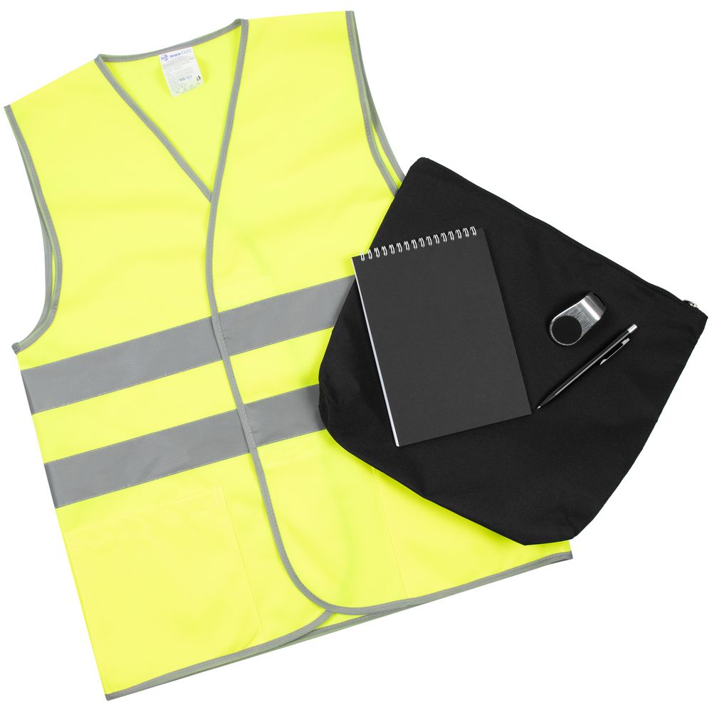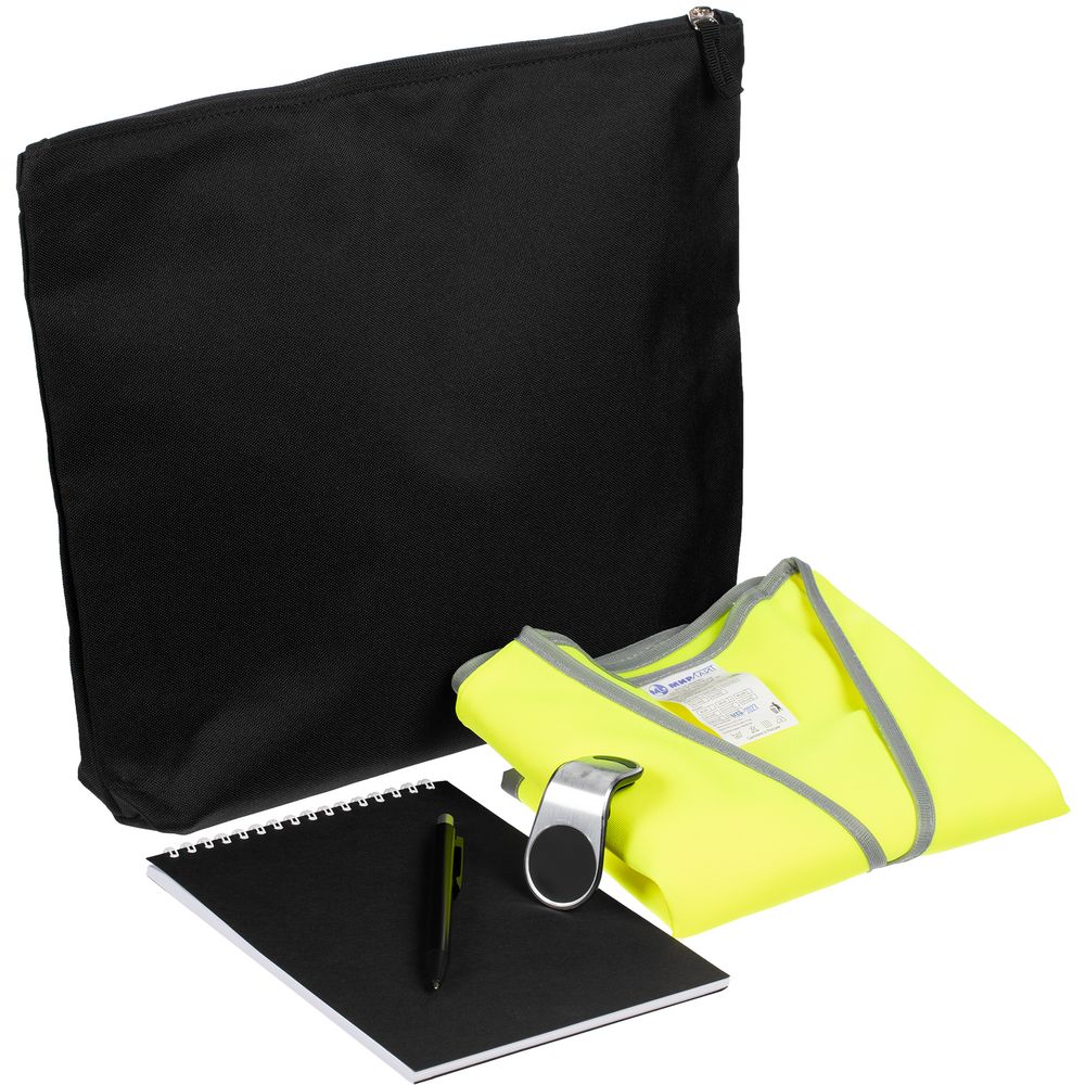 Сдержанный набор со светоотражающим жилетом — то, что нужно для выражения всесторонней заботы о получателе подарка. Светоотражающий жилет, держатель для телефона, блокнот и ручка в большом органайзере — необходимые предметы в каждом автомобиле.