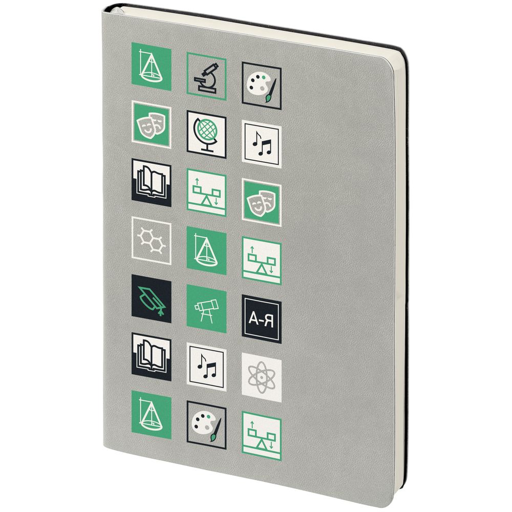 Ежедневник с гибкой обложкой, выполнен из материала Latte, серый, дополнен ляссе в цвет обложки.
