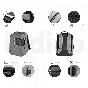 • Рюкзак с потайным карманом inGreed, серый